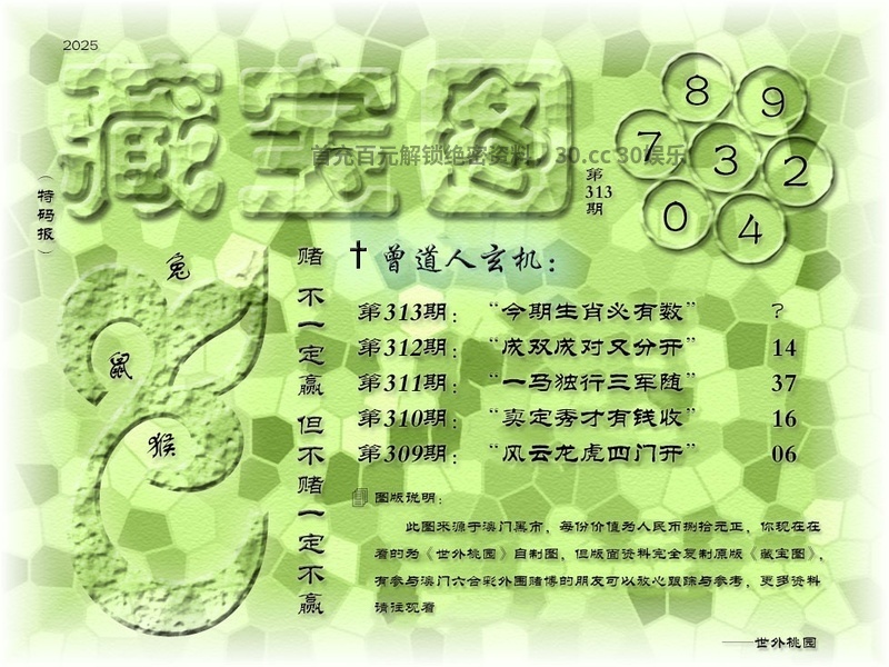 308期 309期 310期 | 3.6.8.9尾 |