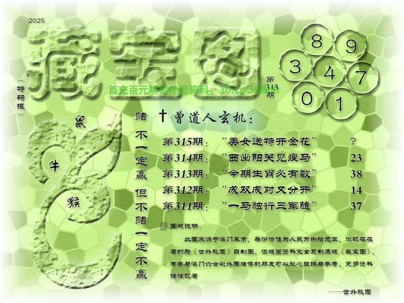 | 311期 | 1-2-3-5-6-7-9 | 蛇37准 |